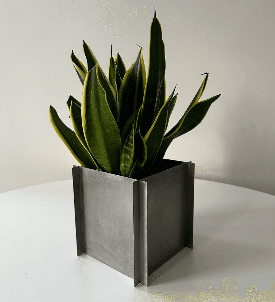 Stalowa donica, z demontowalnym wsadam z tworzywa sztucznego. Montowana oraz wykonana ręcznie.